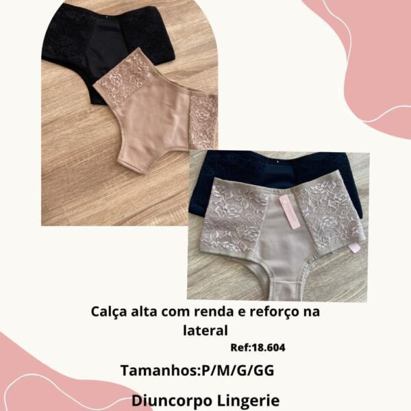 MODELO: CALCINHA DE CETINETE E RENDA, COM LATERAIS DUPLAS.
