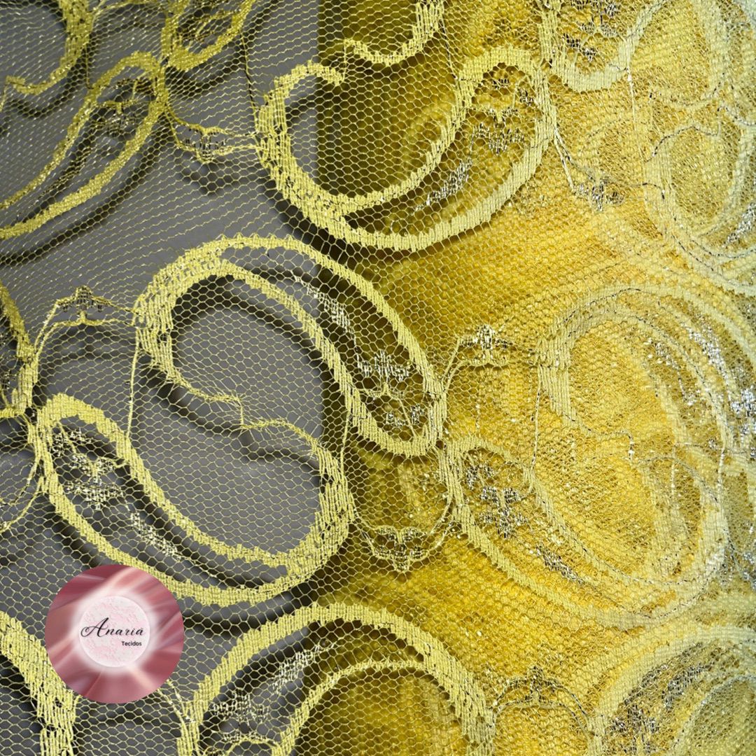 Renda Amarela com Fio Tinto: Largura 1,40 m (140 cm)
