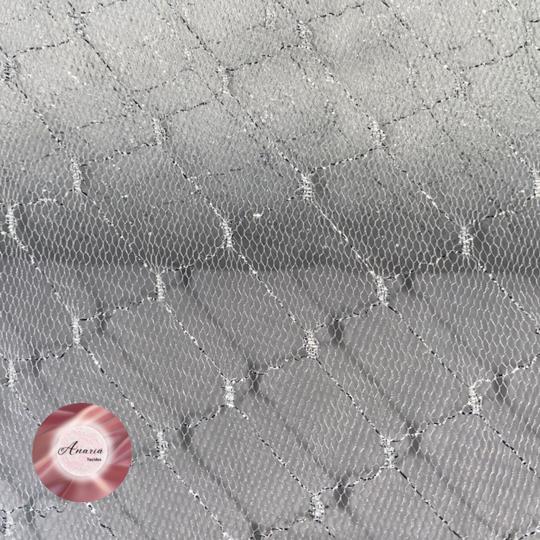 Renda Branca com Fio Prata: Largura 1,40 m (140 cm)